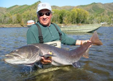 We fish Taimen with 8 or 9 weights and Lenok with a 5 or 6 weight. For the Taimen, we fish with both double-handed and single-handed rods. The fish lay in riffles and in deeper runs. Almost all of our fish are caught on the surface, but, when the fish are being tricky, we will go after them with streamers and sinking lines. Once hooked, the bigger fish will jump completely out of the water before bull dogging their way back to their den.